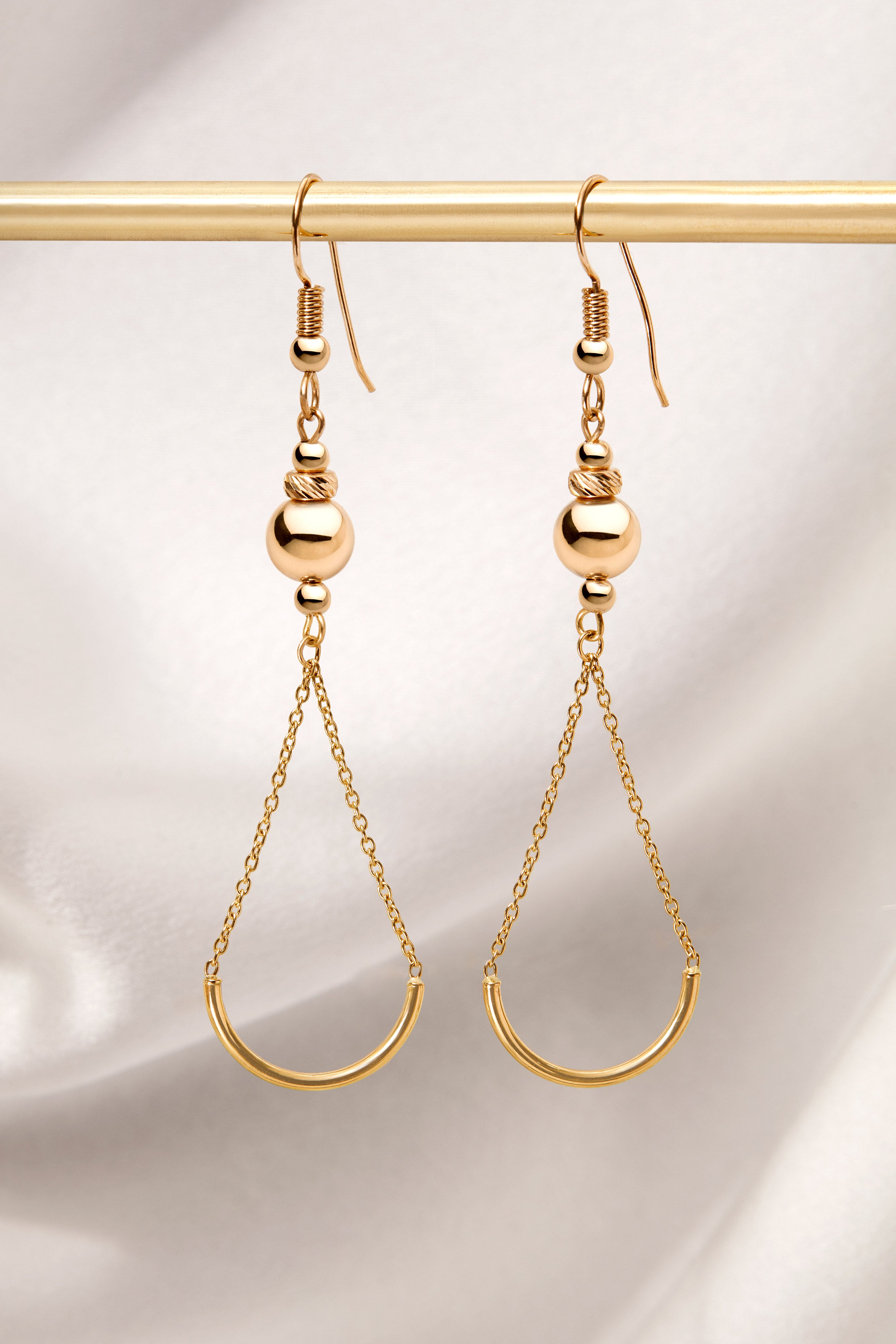 14K GOLD BEAD AND SEMI-CHAIN TASSEL EARRING