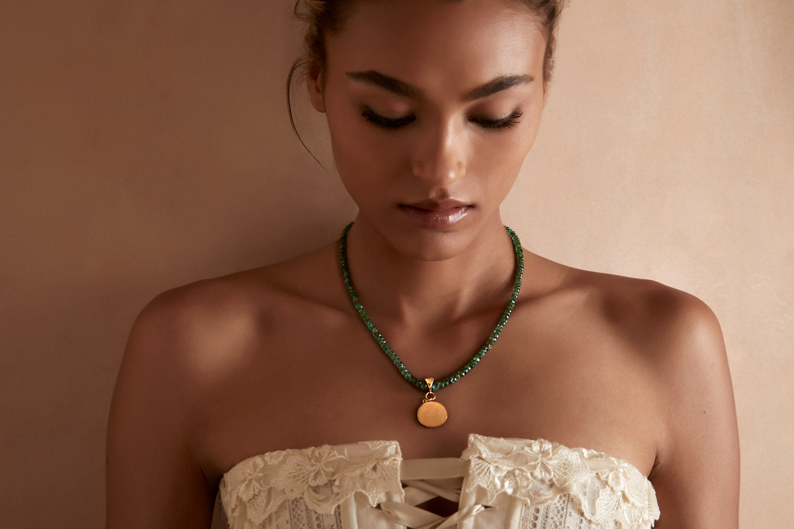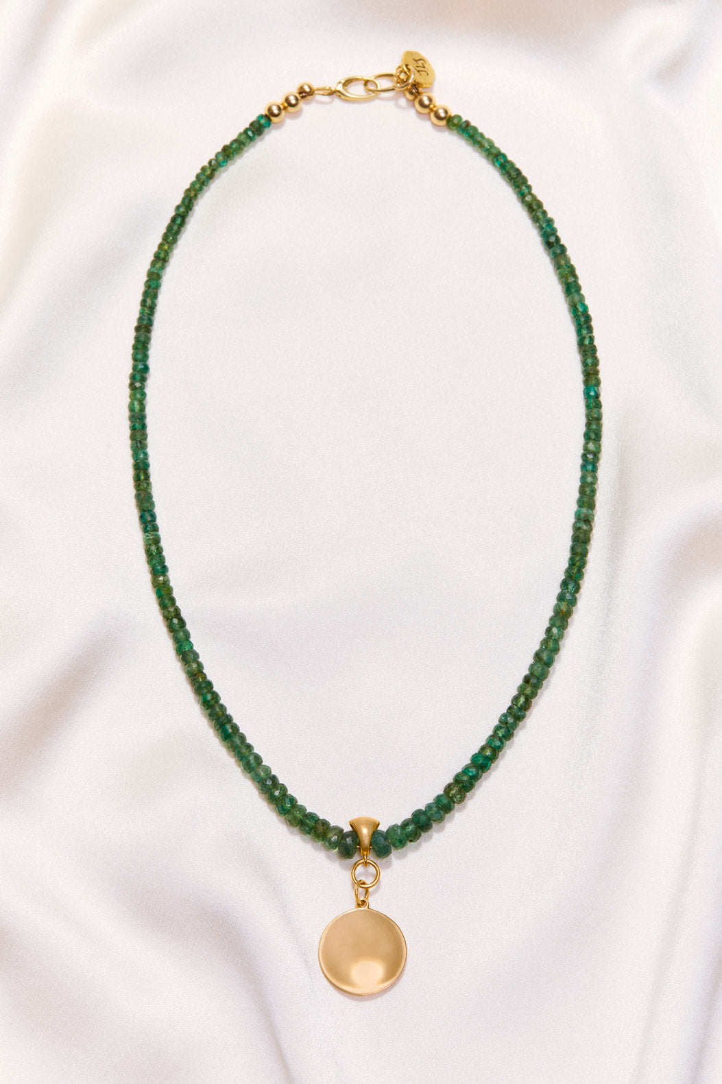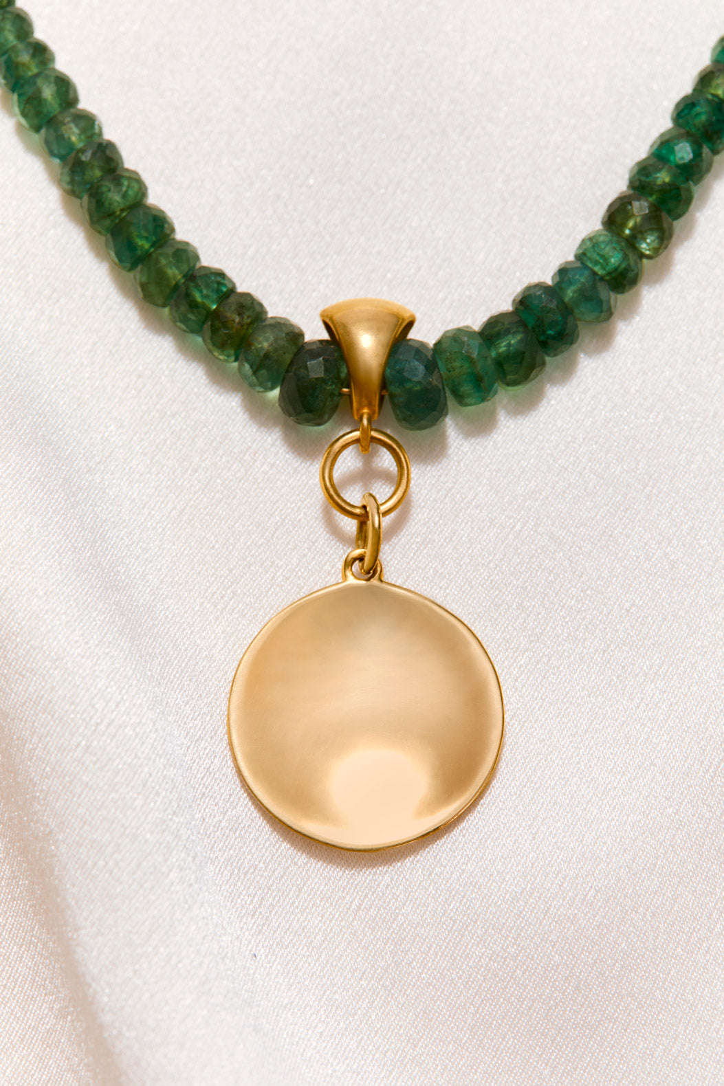 EMERALD NECKLACE WITH 14K GOLD CONCAVE CIRCLE PENDANT