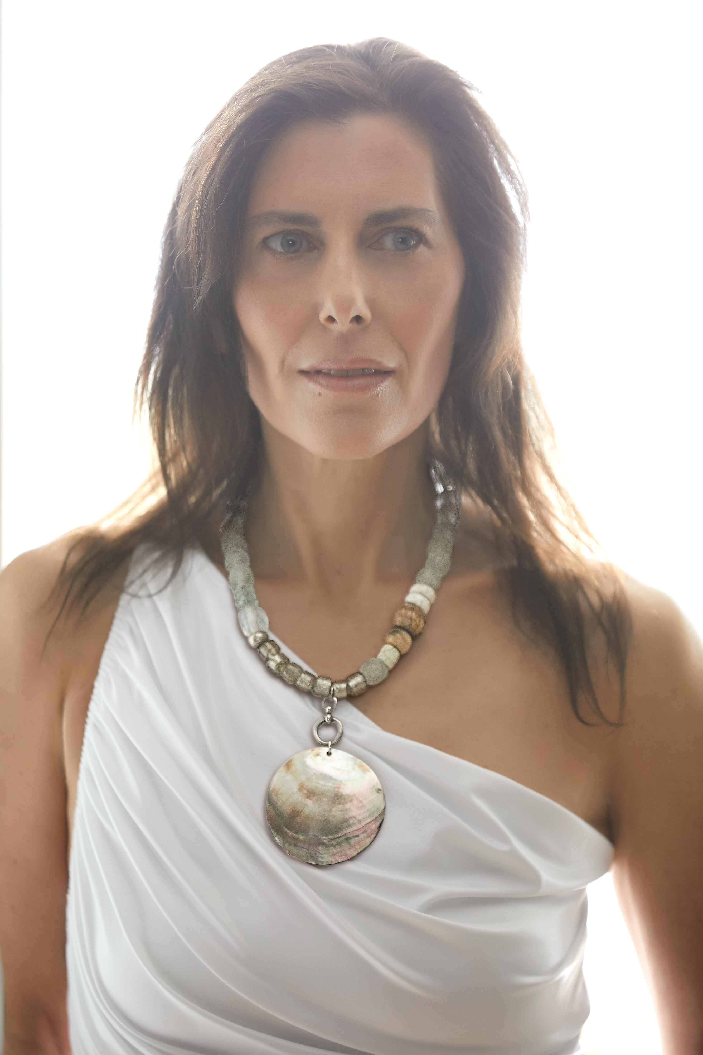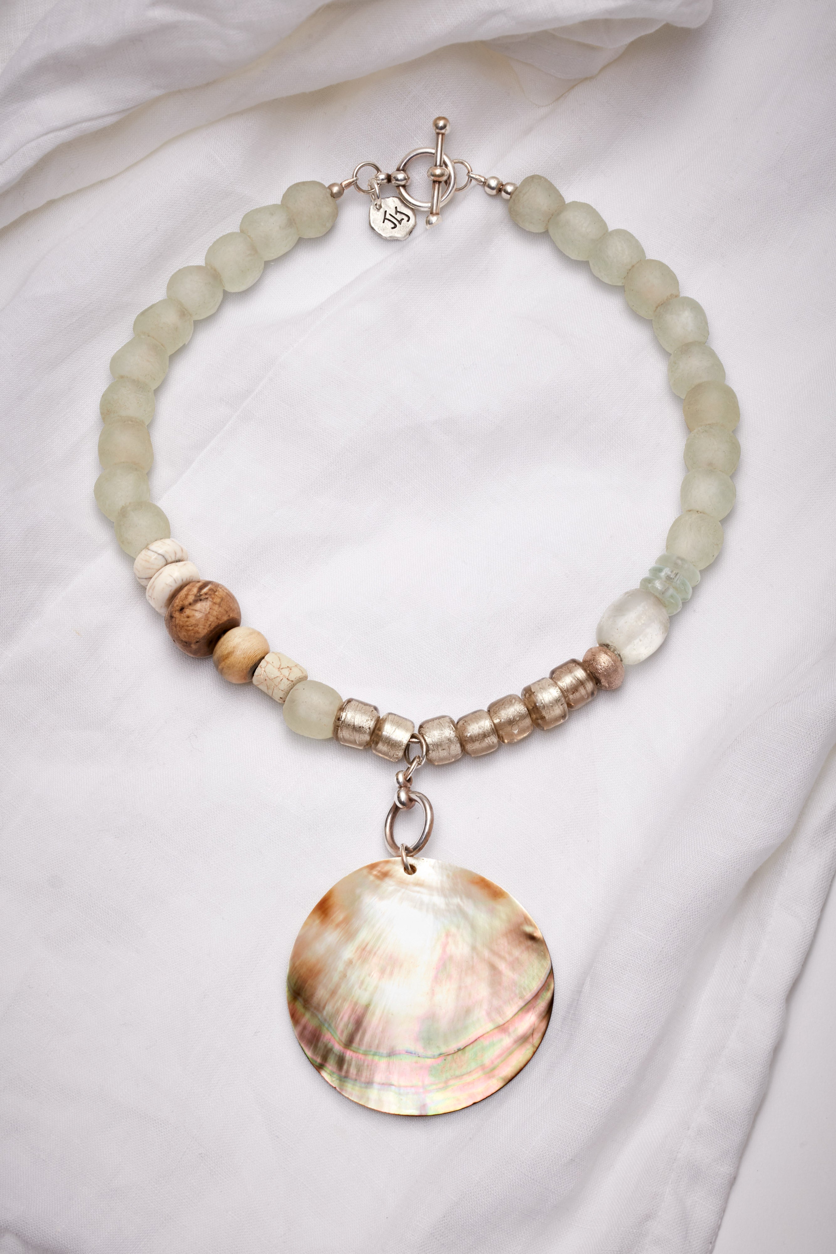 LUMINESCENT GLASS AND SHELL CHOKER NECKLACE
