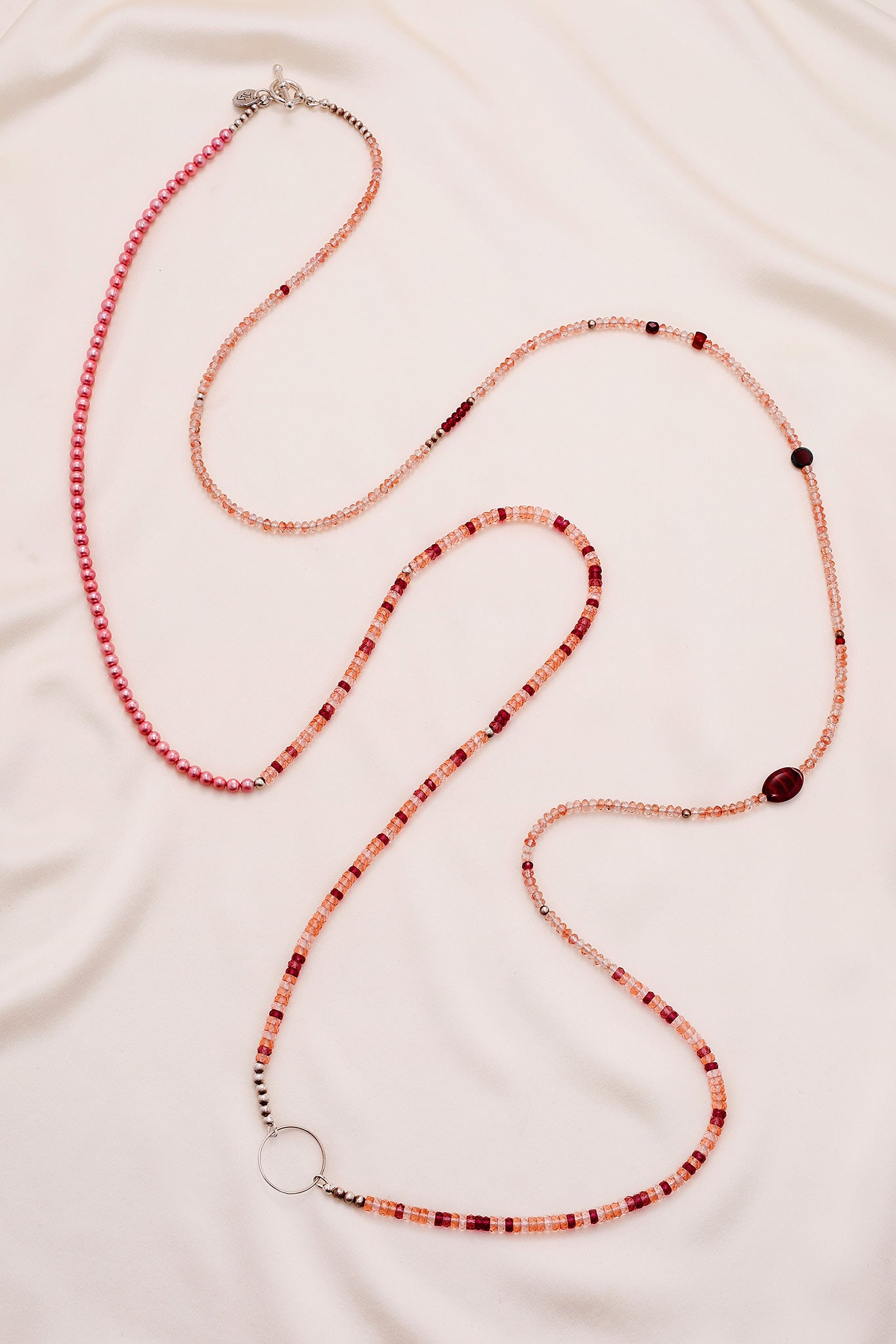 PINK AND RED FRESHWATER PEARL AND GLASS CANDY WRAP AROUND NECKLACE
