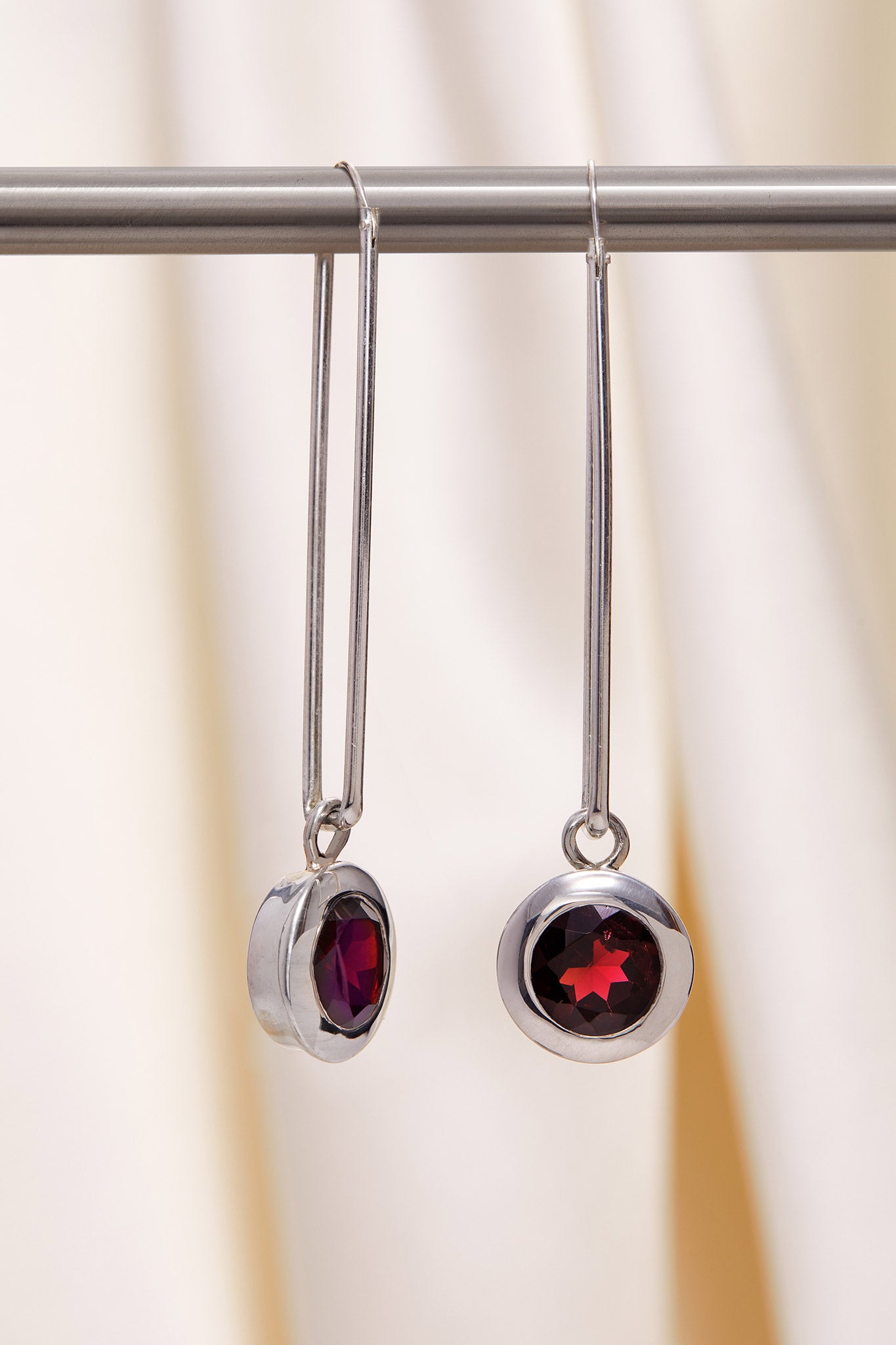MODERN RECTANGULAR RED GARNET DROP EARRINGS